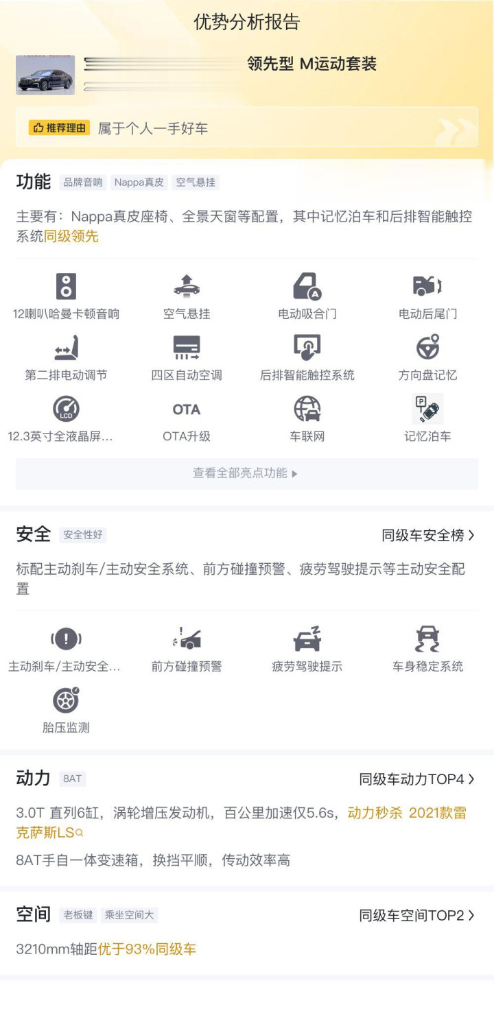 综上所述的新车含税价、用车成本、市场行情、优势分析、同款比价等数据仅供参考。在配置部分,因为二手车非标品,车辆可能会存在配置改装的情况,具体车况信息需要线下结合车辆实际情况进行综合参考。