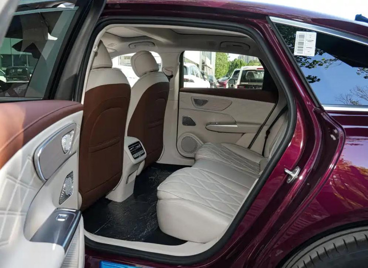风云A9L有着5018*1965*1500mm的车身尺寸和3000mm的轴距,可观的参数创造出1540mm的后排横向空间,以我178cm的身高进行实测,膝部余量超过2拳,同时宽裕的头部空间配合两段式全景天幕消除了压抑感。车内座椅采用了仿皮面料包覆,但要想获得零重力座椅还需额外花费10000元进行选装,值得一提的是,即便顶配版本,后排也未配备通风功能,这对于一些南方用户而言,在夏季用车可能充满抱怨。